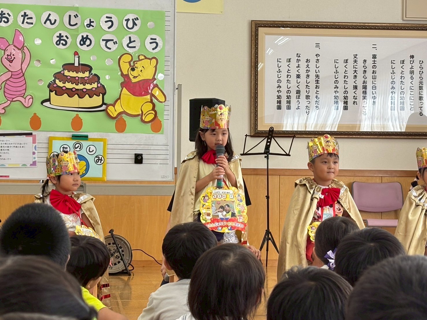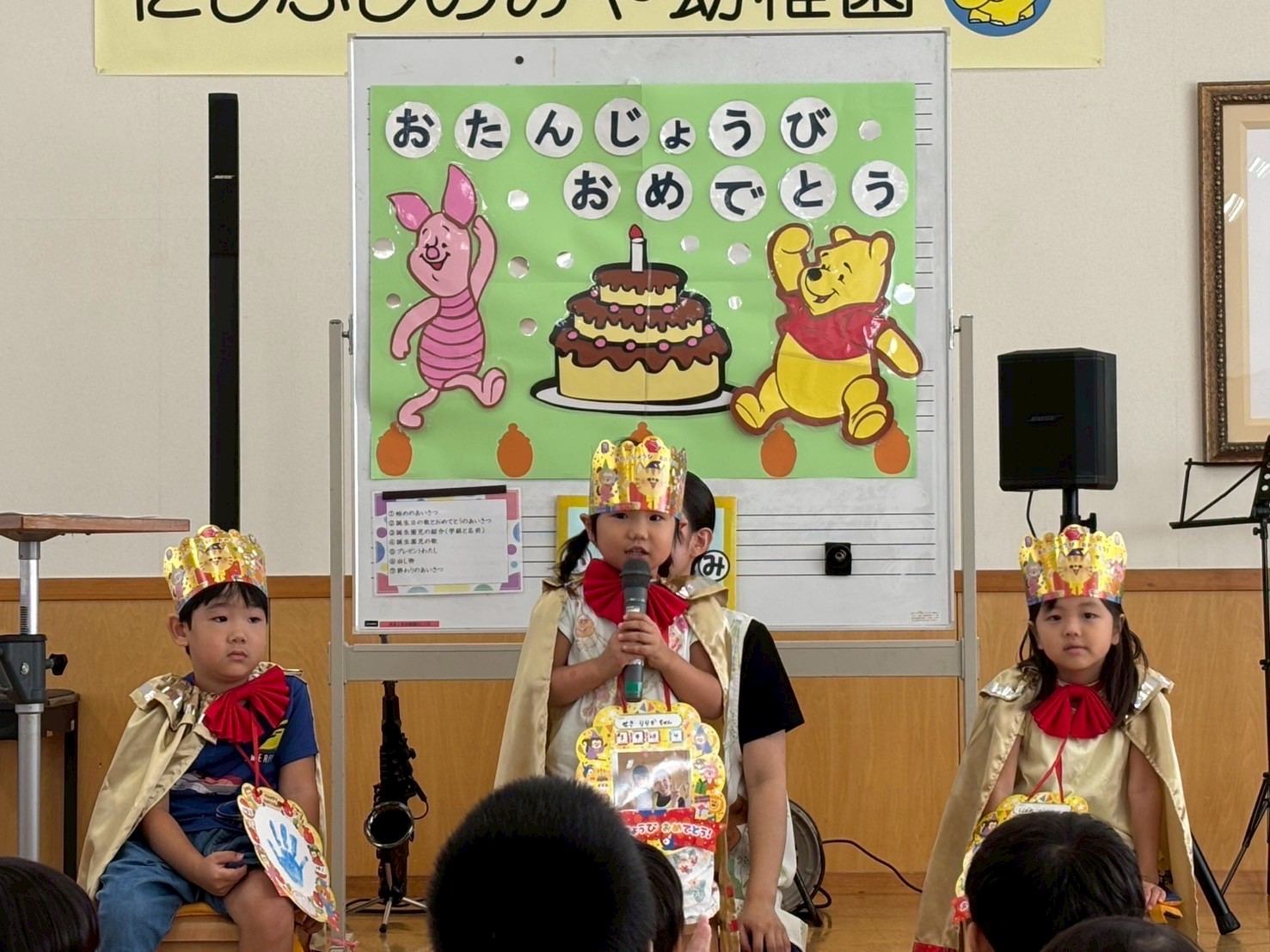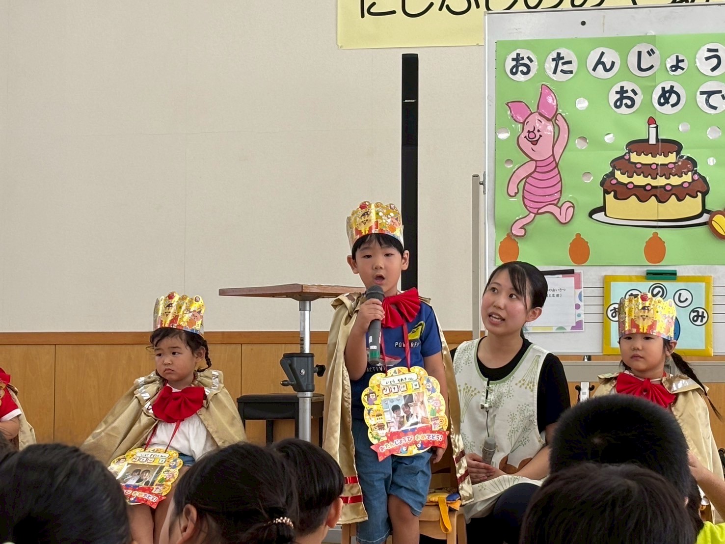 10月生まれ・11月生まれの誕生会が行われました。今回の出し物はシネマ君!素敵な楽しいお話を見ることが出来ました!10月11月生まれのお友達も、名前やクラス・歌など上手に披露することができました。10月生まれ・11月生まれのお友達、お誕生日おめでとう!